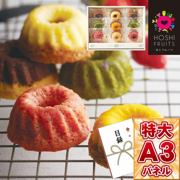 目録 ビンゴ 景品 【ホシフルーツ 果実のミニョン・ド・クグロフ 9個(目録引換券)】 A3パネル付き 忘年会 ビンゴ景品 オンライン飲み会 リモート飲み会 抽選会 キャンペーン 販促 コンペ ゴルフコンペ賞品 企業イベント 法人イベント