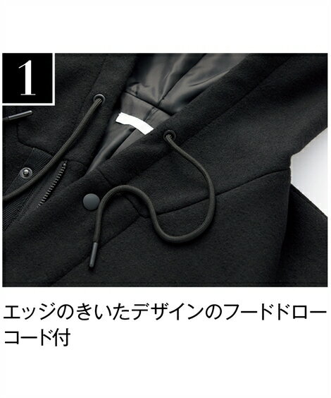 (M/L/LL/3L/4L/5L/6L/7L/8L/10Lサイズ)<こだわりポイント>・きれいめコート一押し!フード付デザインでスタイリッシュ!・ウール混メルトン素材で上品であたたか・前ファスナー仕様とスナップボタンデザインがポイント。